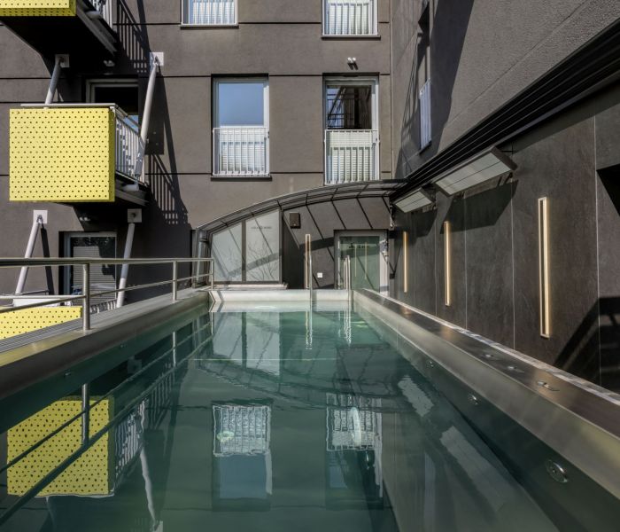 - Dostęp do strefy basenowej (w godz.10-20.30 na zapisy w recepcji), z basenem wyposażonym w dysze do hydromasażu, gejzer wodny oraz strumień wodny (przeciwprąd) pozwalający na pływanie w jednym miejscu