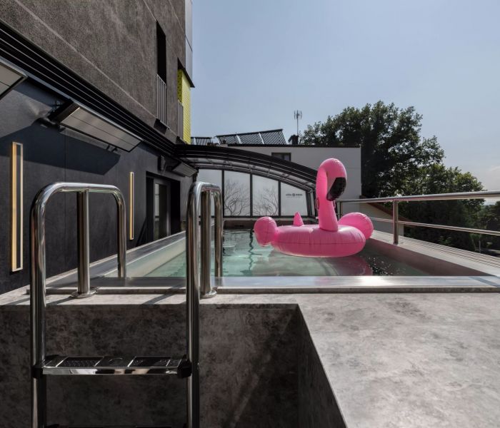 - Dostęp do strefy basenowej (w godz.10-20.30 na zapisy w recepcji), z basenem wyposażonym w dysze do hydromasażu, gejzer wodny oraz strumień wodny (przeciwprąd) pozwalający na pływanie w jednym miejscu