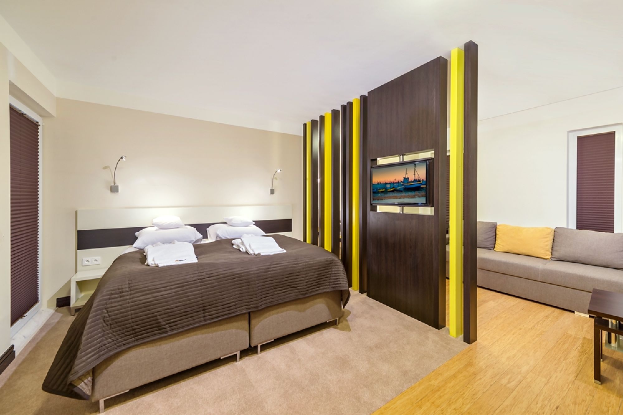Zimmerausstattung: 2x LED-TV 43”, digitales terrestrisches Fernsehen, WLAN-Internet, Safe, Kleiderschrank, Rollläden an den Fenstern, Schreibtisch, vier Stühle, Minibar.